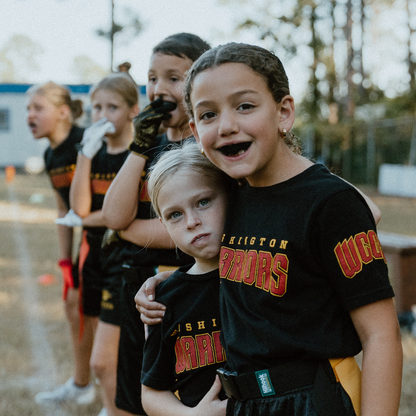 Our lower school flag football teams offer young students a joyful first step into athletics. Through age-appropriate coaching, students learn the essentials of the game while discovering the joy of teamwork and the importance of cheering one another on. Every practice blends skill development with character formation, helping children understand that sportsmanship and effort are expressions of honoring God.